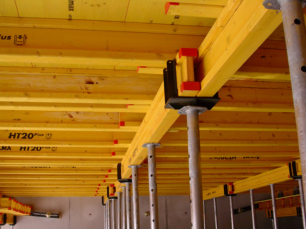 Encofrado de vigas de madera para la construcción de todo tipo de forjados: losas macizas, aligeradas, inclinadas, vigas de cuelgue, remates, voladizos etc. Las vigas independientes aportan gran flexibilidad a este sistema de encofrado y ofrece excelentes acabados de hormigón visto.