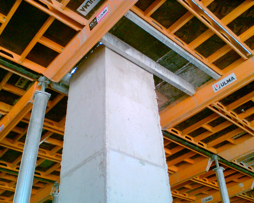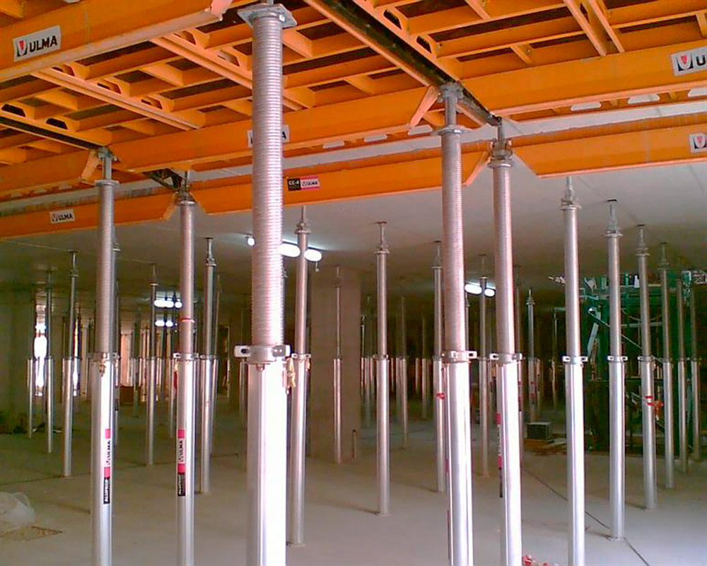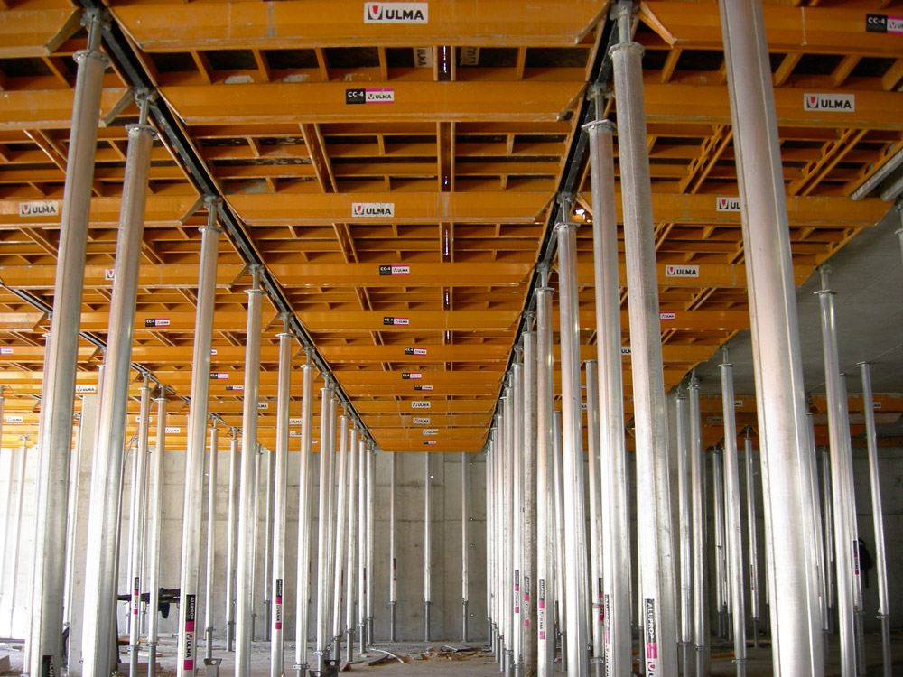 En cuanto a las características técnicas, se trata de una obra de volumen importante de un producto novedoso como es el Encofrado de Aluminio CC-4, que se utilizó para el encofrado de losas. Para el apeo del Encofrado Horizontal CC-4 resultó idóneo la utilización del ALUPROP, debido a las grandes cargas a soportar y alturas para las que otros puntales no eran los adecuados. Así, se cubrieron incluso dobles alturas, en las que se utlizó doble Puntal Arriostrado, tal y como permite el sistema. Como resultado se consiguió un alto nivel de acabado y rendimiento en obra.