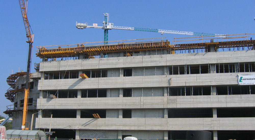 El proyecto fue diseñado como una columna monolítico y sistema de losa. Las columnas de hormigón armado, los tabiques exteriores y las paredes de la escalera forman la estructura de soporte de este edificio. La estructura horizontal, establecida por vigas de cuelgue y losas, formaron una retícula de 8,5 x 7,85 m. En el área norte y este, al estar el edificio bajo tierra, se ejecutaron tabiques de contención con hormigón armado.