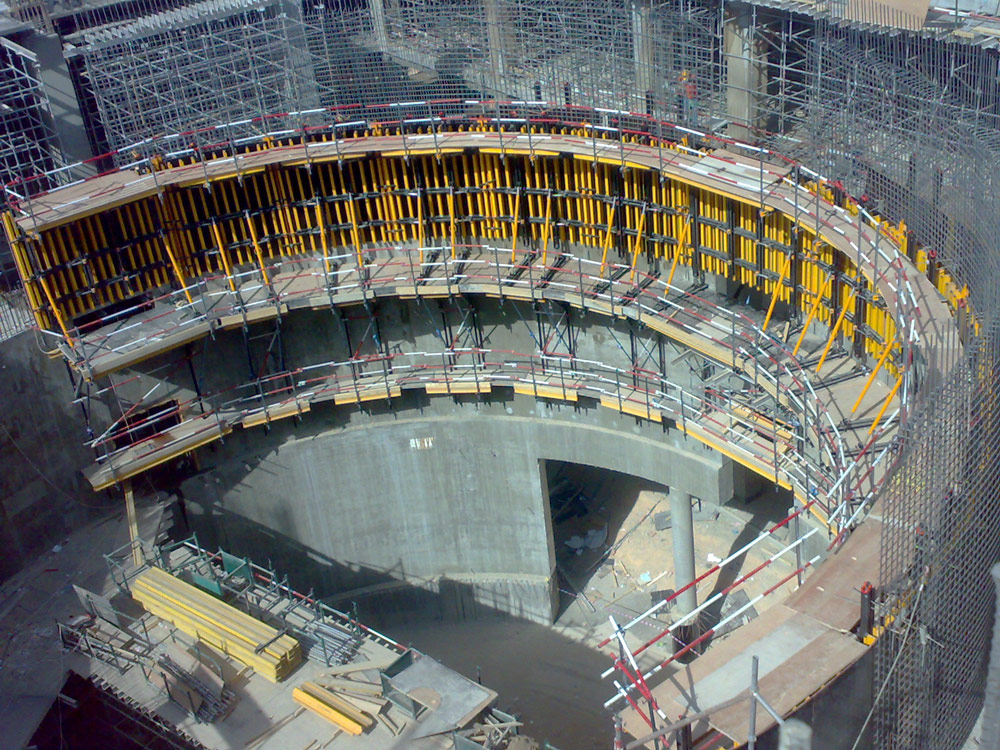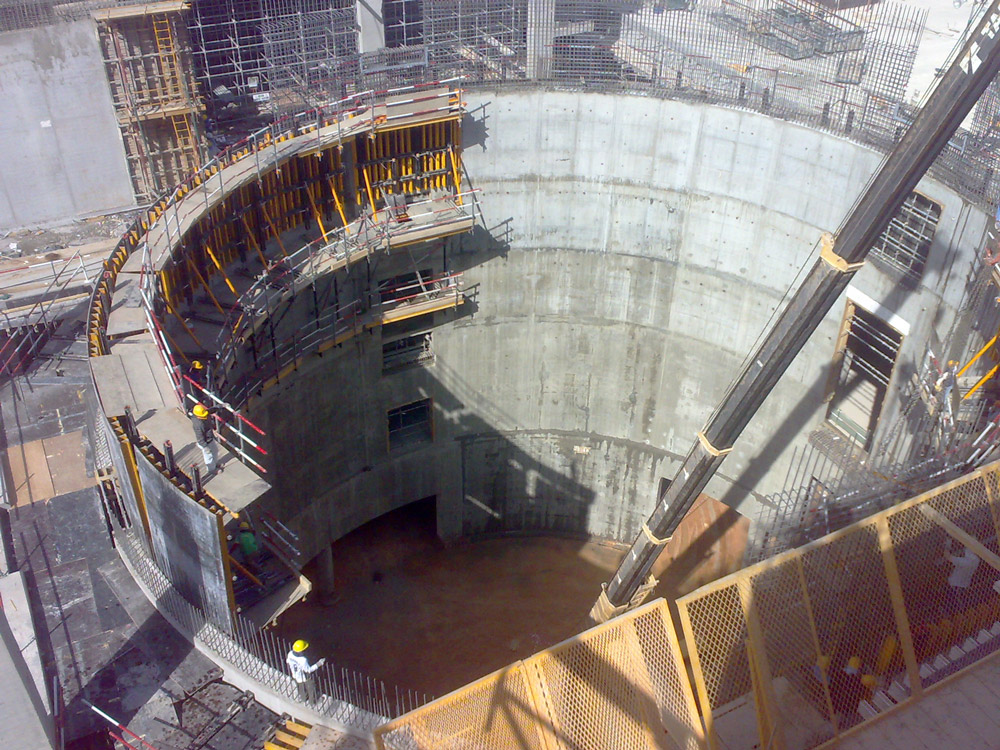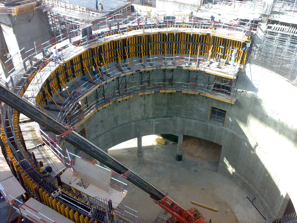 En la realización de tabiques en diferentes fases, se empleará el Encofrado vertical ENKOFORM V-100 sobre Consolas de trepado CR-250 para la ejecución de tabiques.