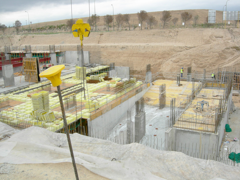 En la ejecución de las losas, de configuración simple, se utilizaron los Encofrados Horizontales RAPID y RECUB, mientras que el Encofrado ENKOFORM HMK se aplicó en aquellas superficies más complejas, por su geometría o espesor. La cimbra sirvió como estructura de base a los encofrados de losa.