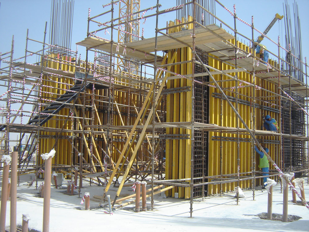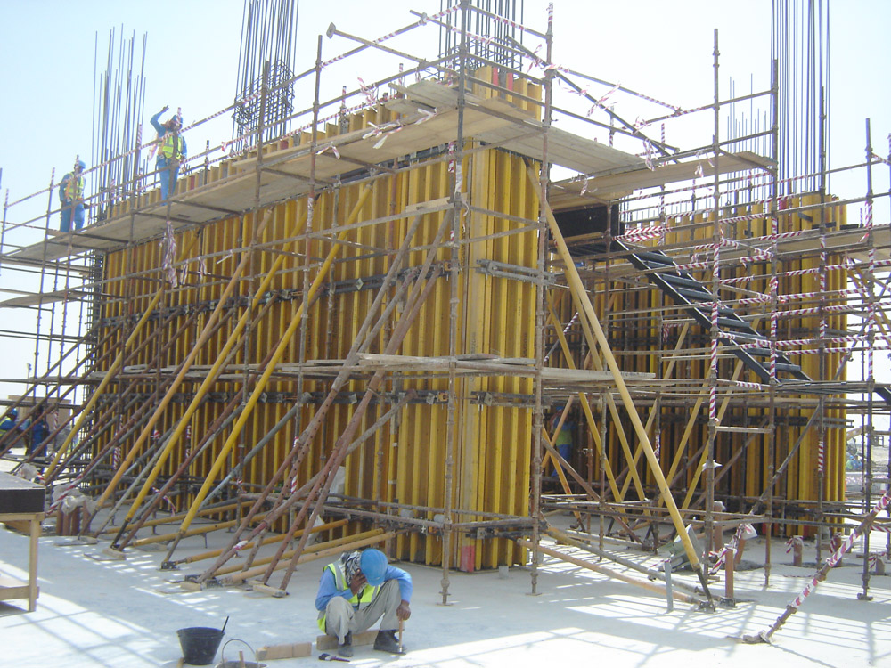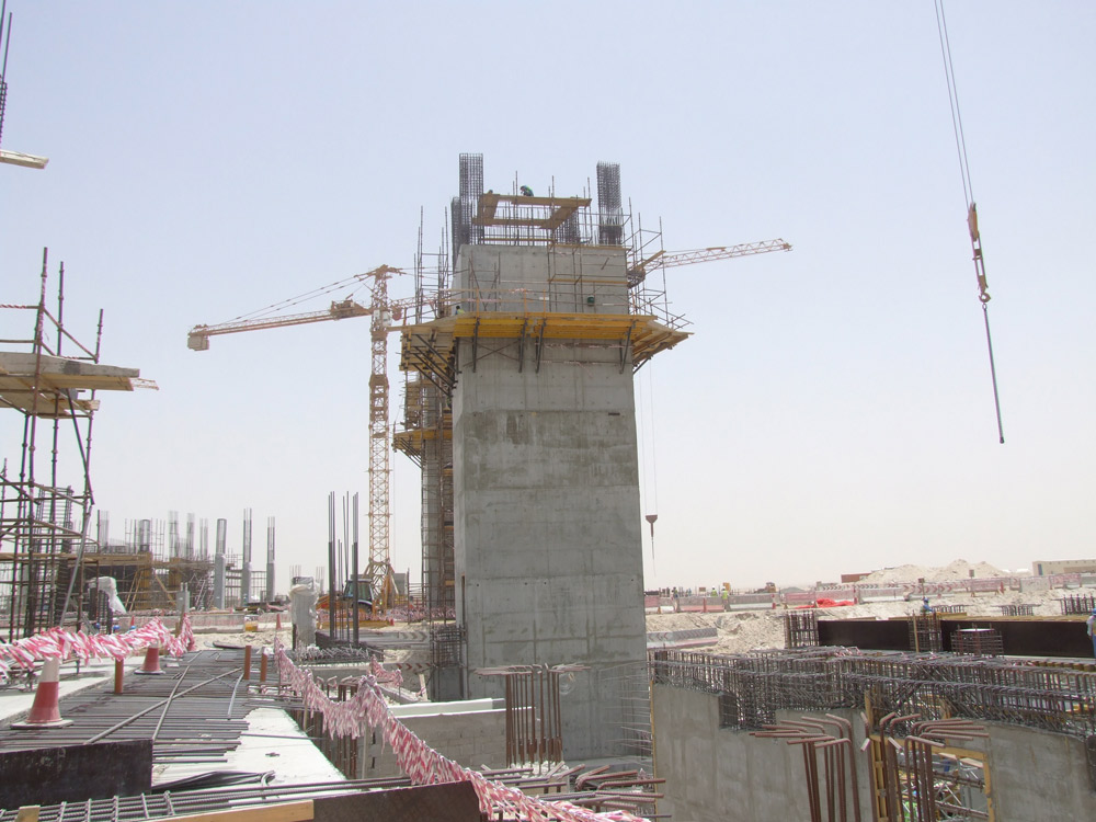 Para la realización de esta gran obra se han empleado diferentes productos. La ejecución de las pilas de 1,20 x 1,20 m de ancho y una altura superior a los 6 m, se llevó a cabo gracias al Encofrado ENKOFORM V-100. Asimismo, este producto se empleó en la realización de tabiques, de una o dos caras, con un espesor superior a los 50 cm. En aquellos casos con alturas considerables, como los núcleos de la estructura, se emplearon sistemas convencionales de trepado como CR-250, con todas las medidas de seguridad pertinentes.