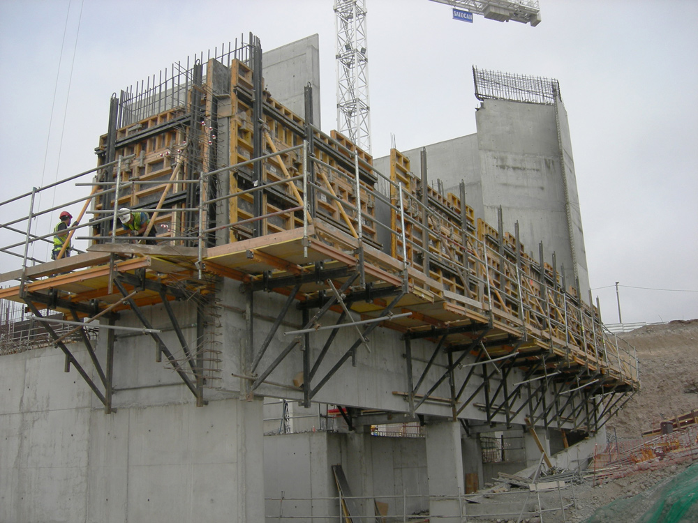 - Interior: plataforma interior trepante apoyada en encajes abatibles colocados sobre los contrafuertes.