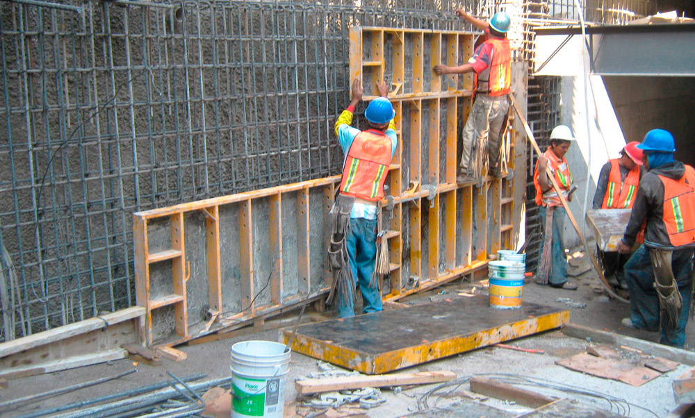 - Tabiques a una cara de 2,4 m de altura y 14 m de longitud, sitúados en los sótanos del edificio. Para su construcción se empleó el Sistema NEVI, con paneles de 2,4x0,9 y 2,4x0,6, Tensores E y Riostras DU-100 de 3 y 2,5 m de longitud.
