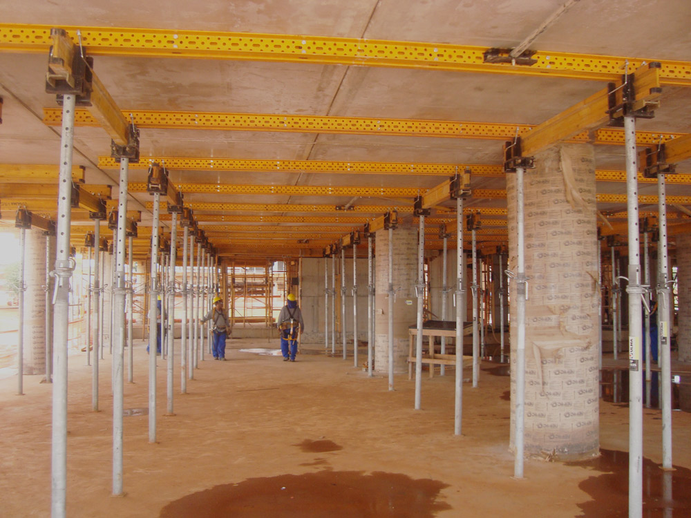 Para ello, ULMA empleó el sistema de Mesa VR que se adaptó fácilmente a la solución BubbleDeck, combinando productividad y economía. En el momento de mayor actividad, el complejo contó más de 4.000 m² de Mesas VR junto con el apoyo de los puntales EP. Este sistema permite el desplazamiento de la Mesa VR sin la necesidad de ser desmontada.
