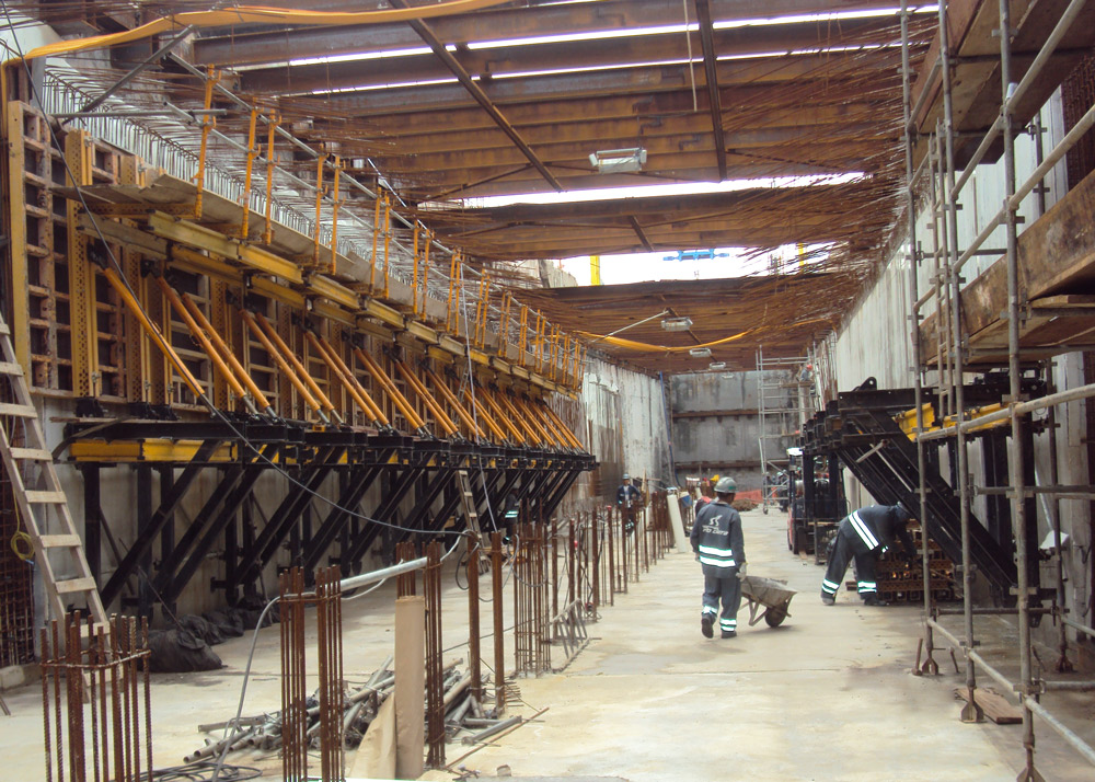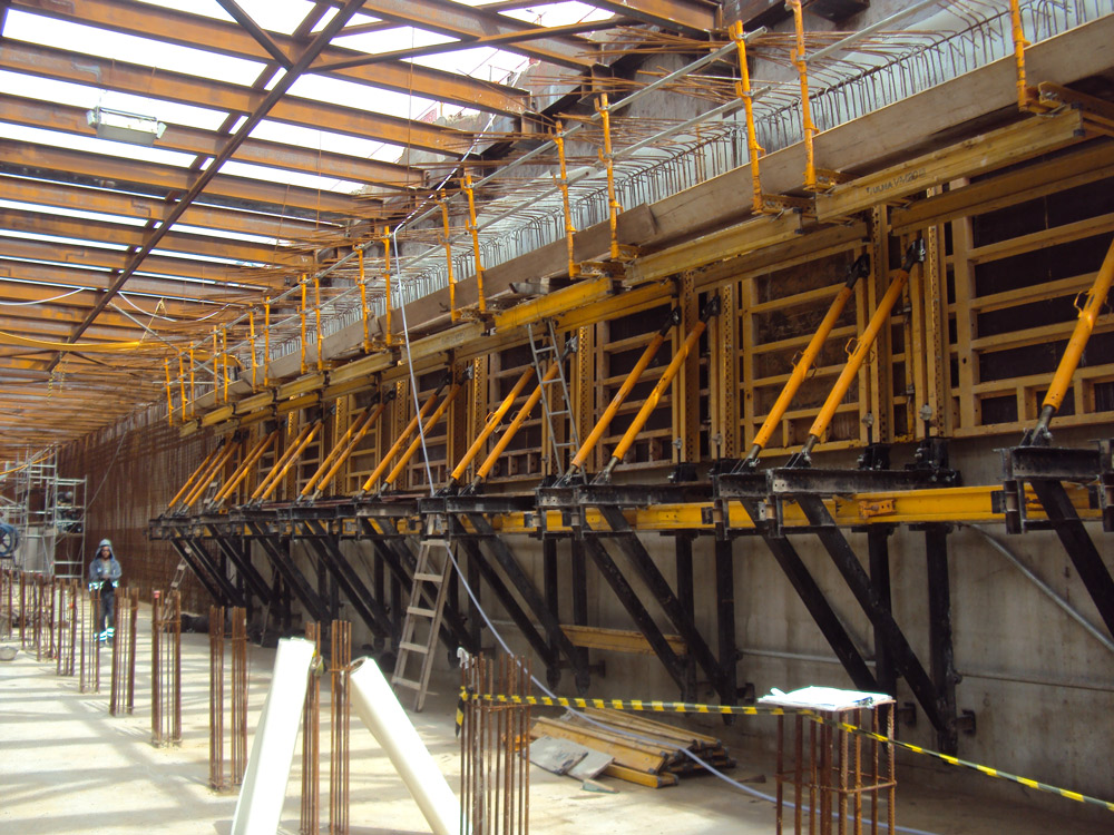 Además de mantener la máxima de rotación de sistemas, las columnas centrales del túnel con más de 5,5 m de altura debían realizarse en una sola tongada y disponer de un perfecto acabado. ENKOFORM VMK ha cumplido con todos los requisitos solicitados.