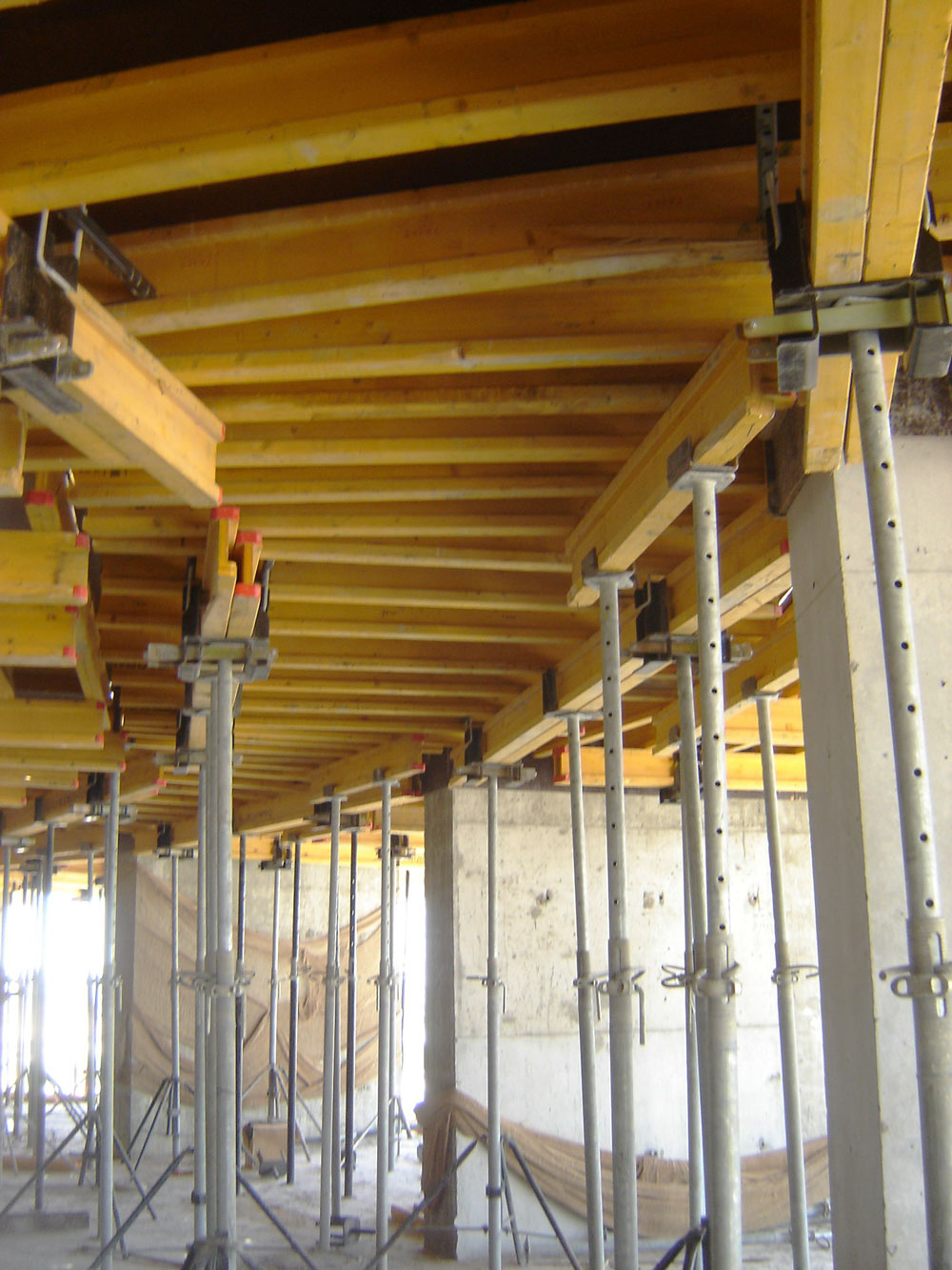 Las losas de hormigón, en los pisos superiores, se encofraron con Mesas VR cuyo traslado, a distintas ubicaciones, pudo realizarse sin la necesidad de ser desmontadas, ni manipuladas. El ahorro de tiempo fue considerable.