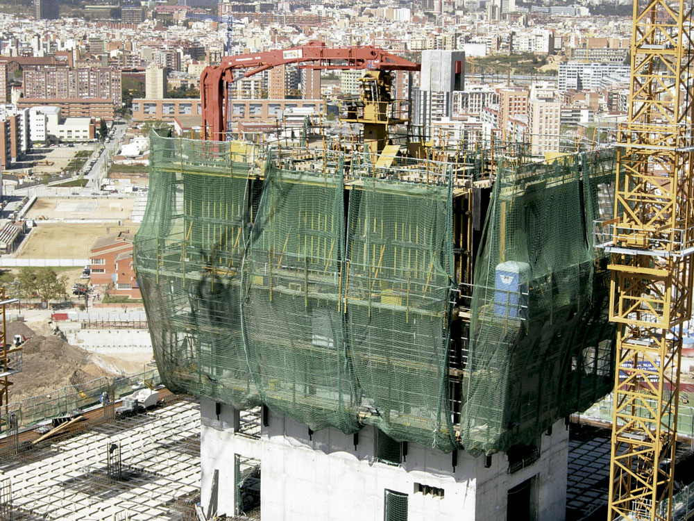 En la ejecución del encofrado exterior del edificio de oficinas, el Sistema Autotrepante ATR estaba compuesto por consolas que sirvieron de apoyo al encofrado unidas mediante un carro de retranqueo. Este sistema, accionado por un mecanismo de cremallera, separó los paneles del tabique en la fase de desencofrado. Dispone asimismo de un tensor que sirve para aplomar el encofrado y elementos de regulación que permiten posicionarlo tanto de forma vertical como horizontal. Mientras, el encofrado interior se resolvió con plataformas autotrepantes, pero a base de cerchas. Las cuatro plataformas de las que consta el sistema están comunicadas mediante escaleras que permiten moverse por la estructura con total seguridad.