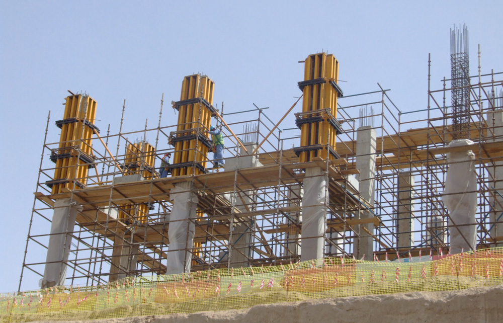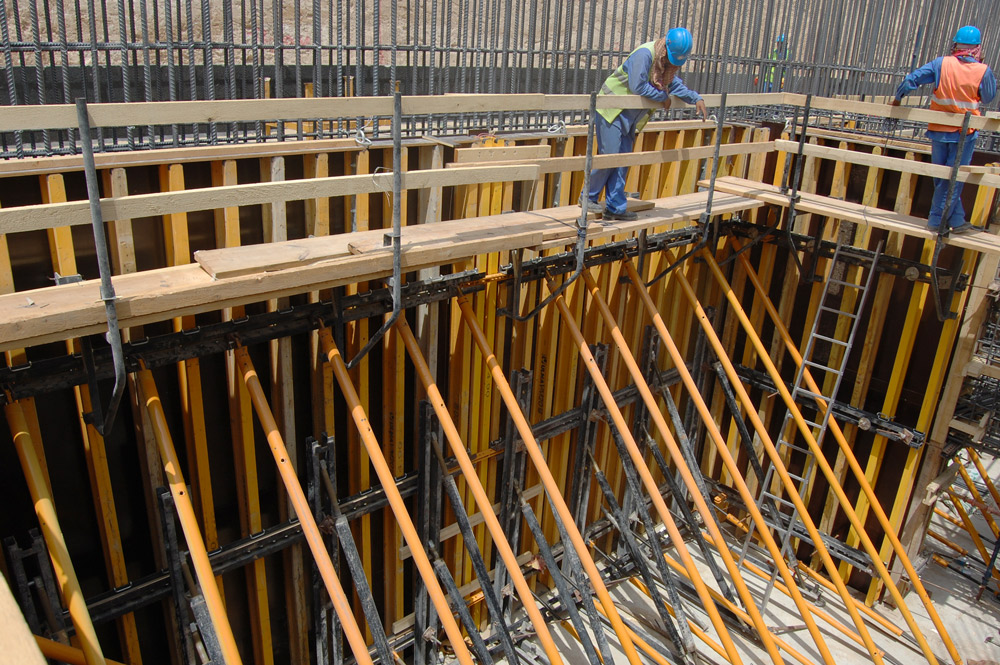 La ejecución de tabiques se realizó mediante el sistema de encofrado vertical ENKOFORM V-100. Las cerchas UCAB soportaron la presión del hormigón en los tabiques a una cara.
