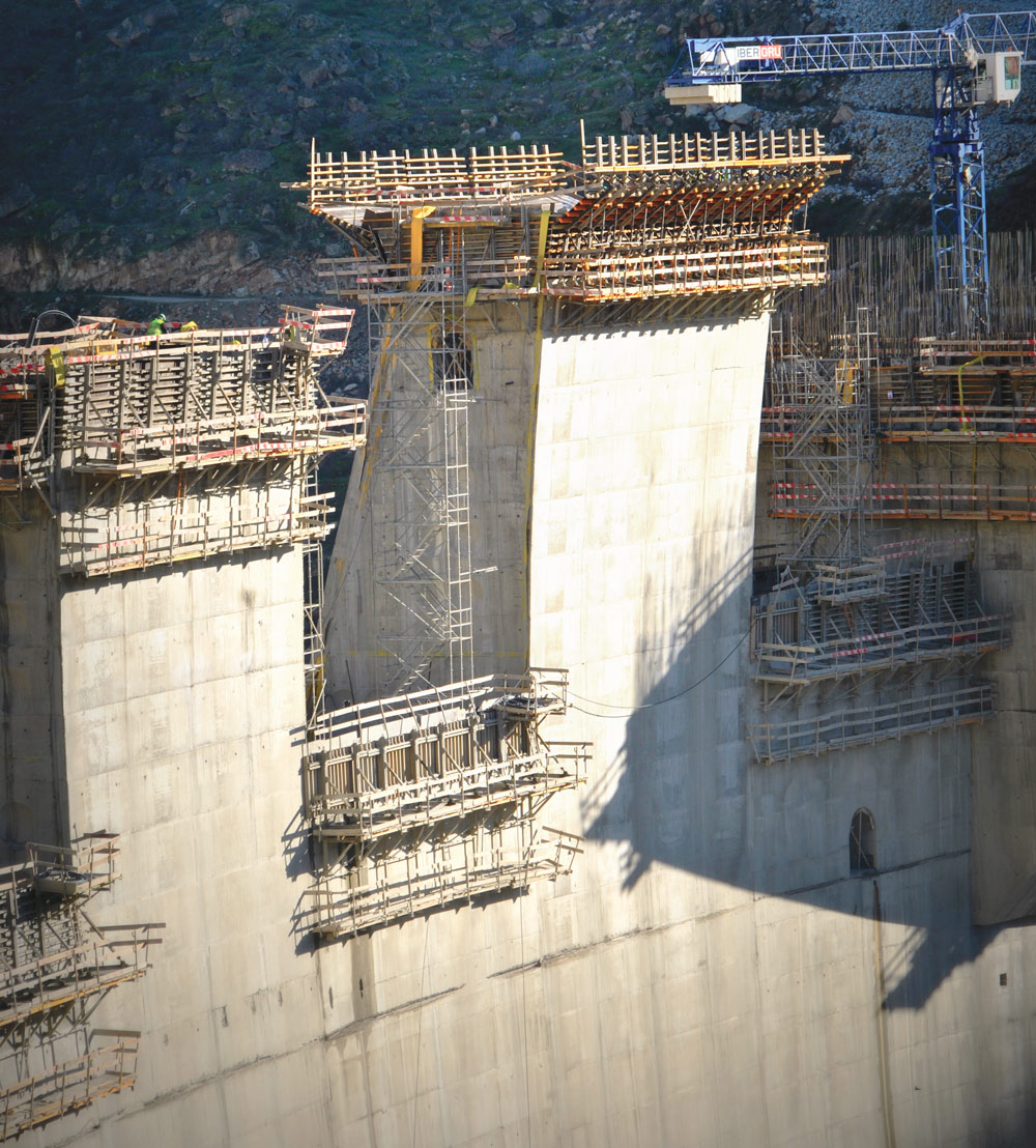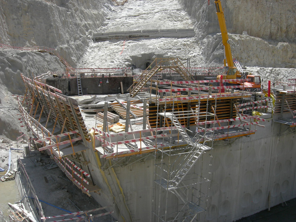 En la construcción de la presa, de 127 m de altura y 505 m de longitud, se utilizó encofrado vertical ORMA, BIRAMAX y ENKOFORM V-100. También se emplearon consolas de trepado a una cara, suministros de cimbras, andamio multidireccional y Escalera BRIO. Se vertieron más de 860.300 m3 de hormigón.