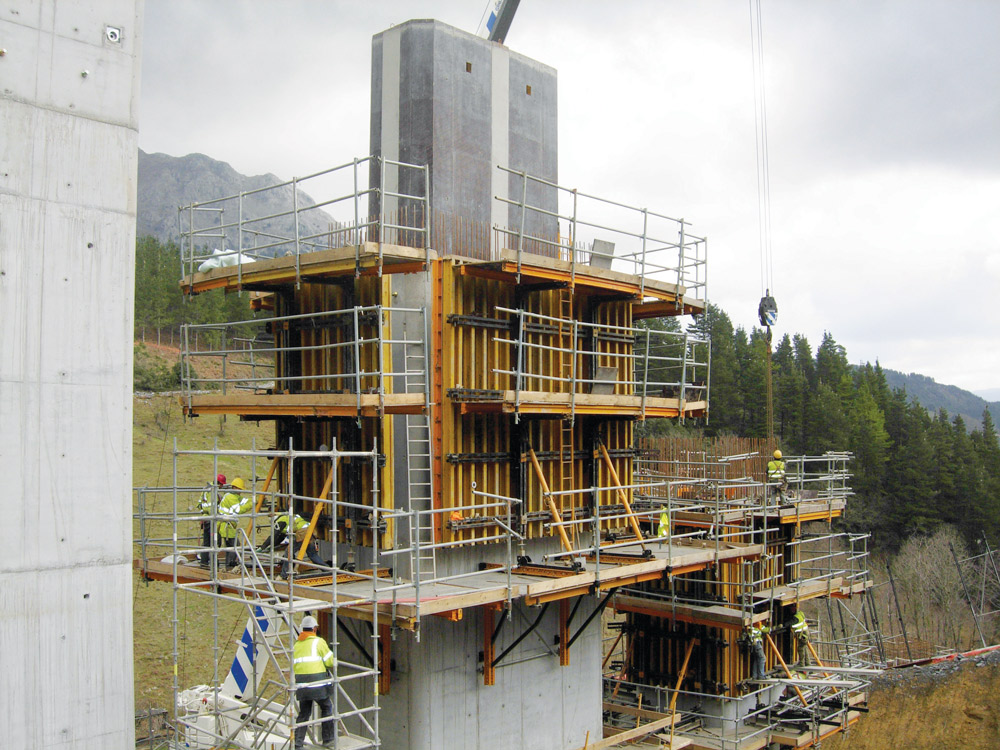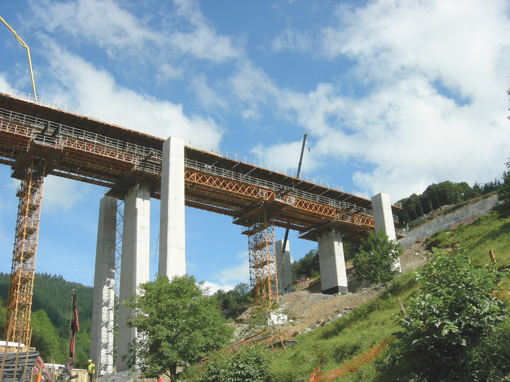 El tablero de sección cajón, con canto de 3,64 m, se ejecuta en dos fases, mediante el encofrado ENKOFORM HMK. En la primera, se realiza el fondo y los hastiales y en la segunda, el techo y las alas.