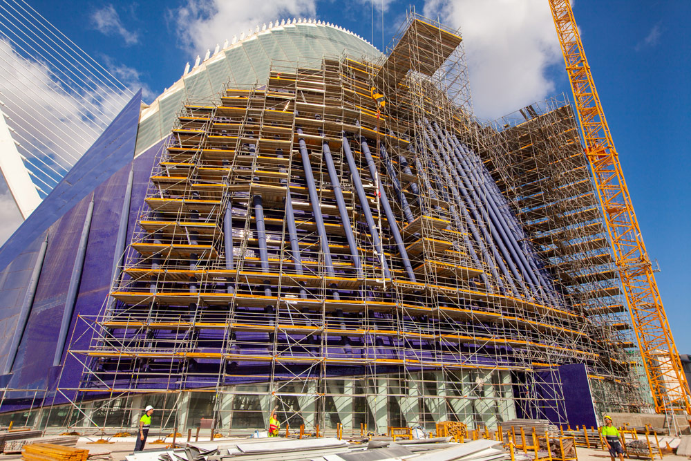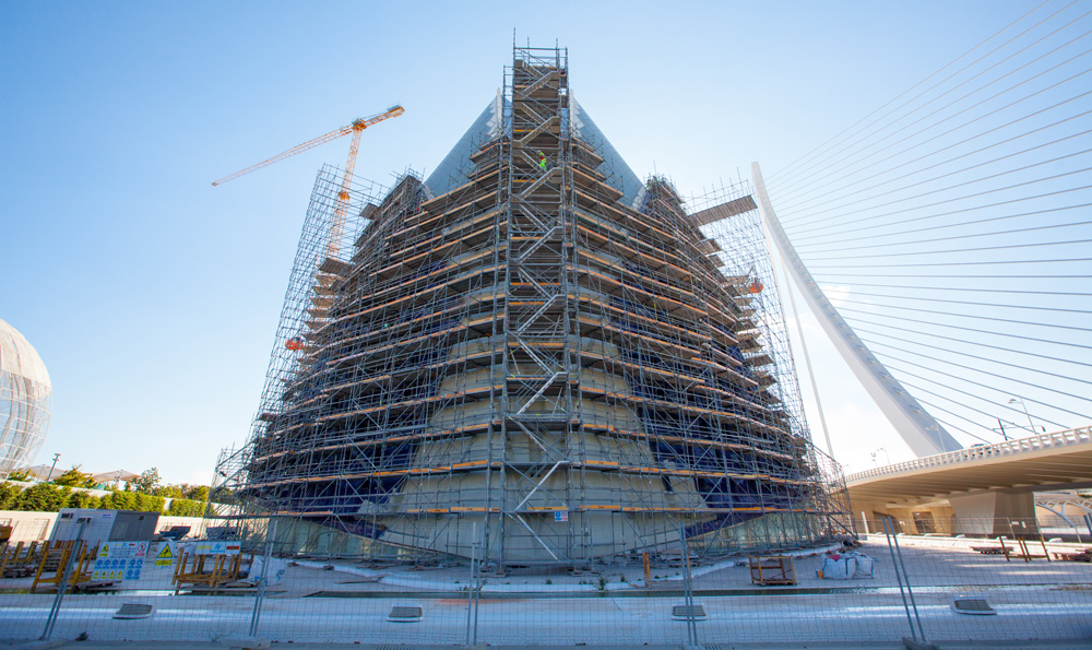 ULMA ha sido el único proveedor de soluciones de andamio. El trabajo ha consistido en la cubrición del edificio con el sistema de andamio multidireccional BRIO para la rehabilitación de más 4.247 m². La geometría ha dificultado la aplicación, por la forma elíptica y los cambios de pendientes en las diferentes alturas.