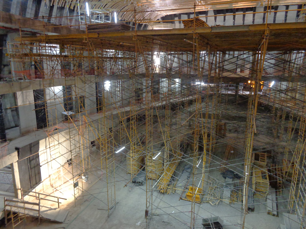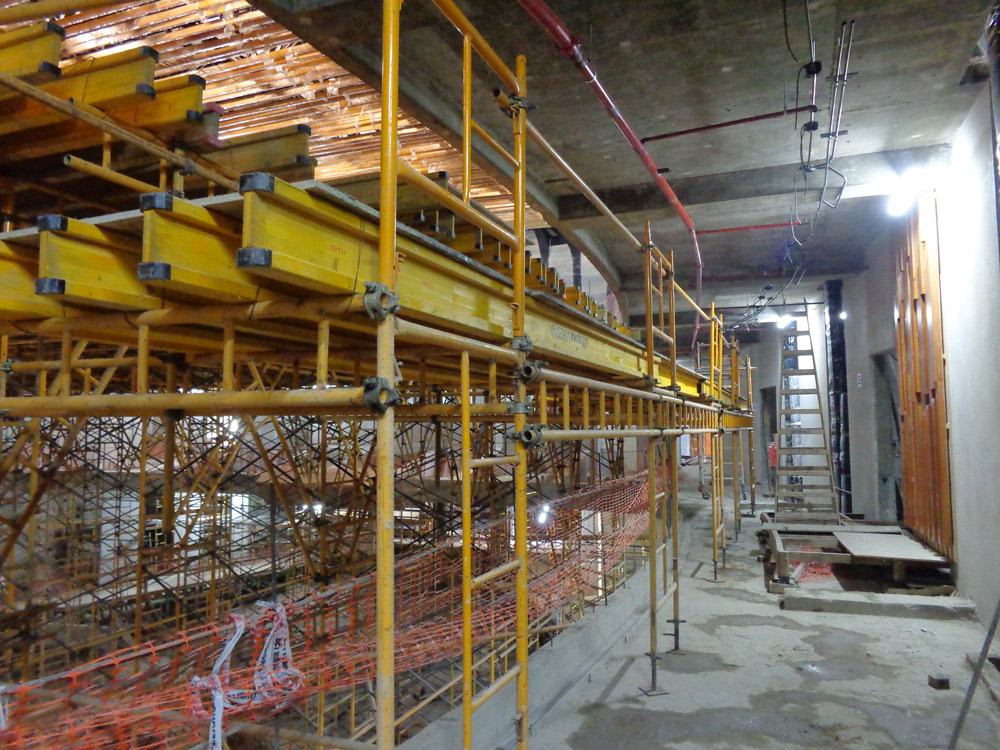 - SALA DE CÁMARA: Una plataforma de 651m² a 7 metros de altura máxima, ya que tuvo que apoyarse sobre un plano inclinado. Se incluyó una escalera interior de Andamio para acceso de los operarios.