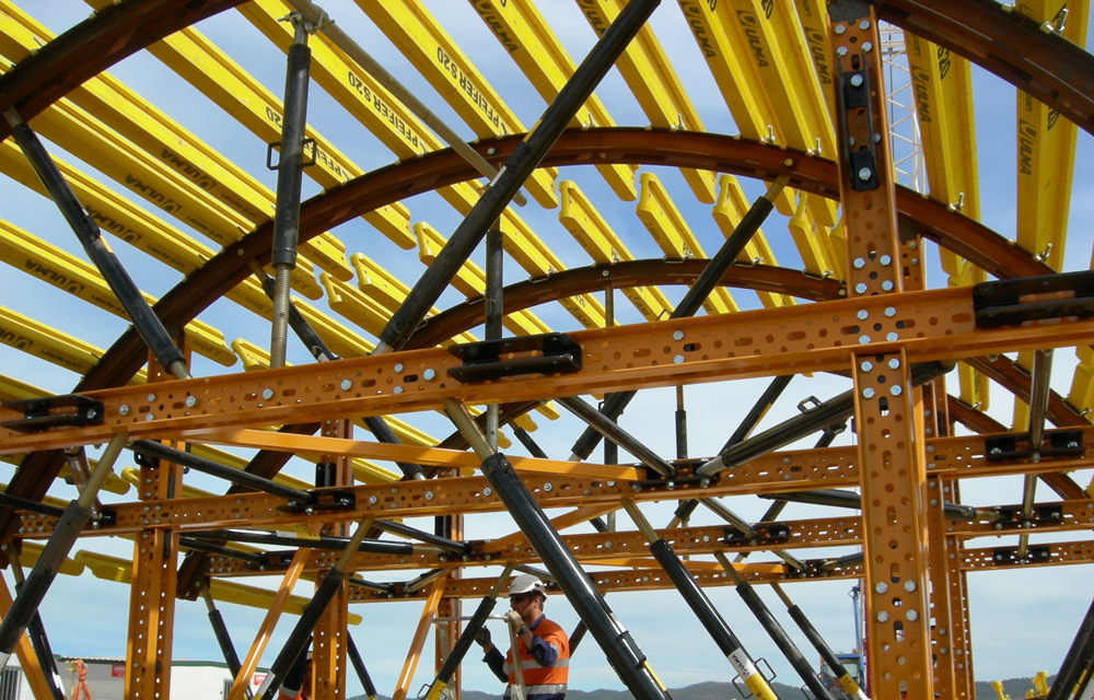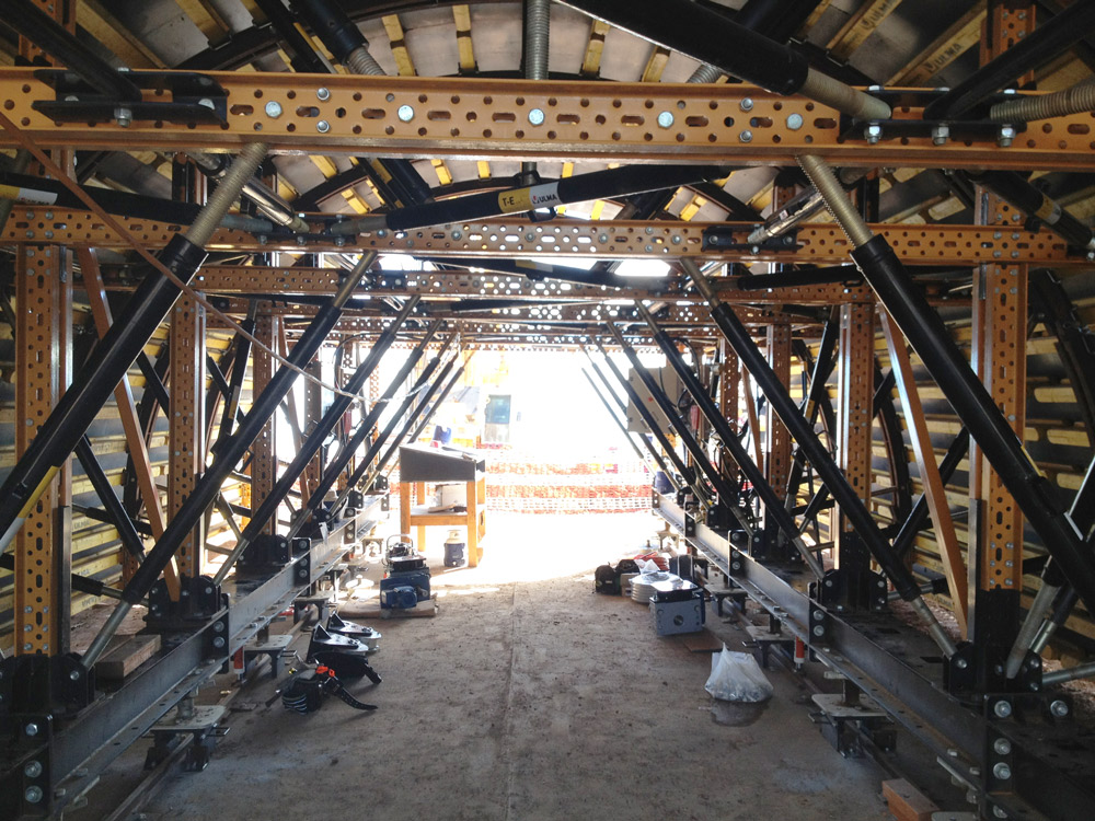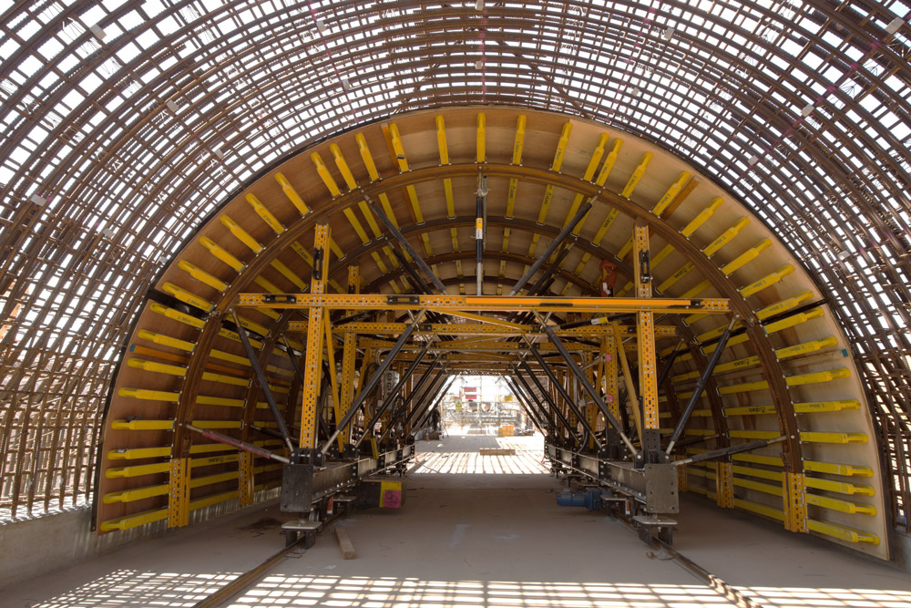 Para satisfacer estas necesidades se emplearon Carros de túnel MK. Las conexiones entre riostras del Sistema MK proporcionan gran rigidez y exigen menos material. Además, facilitan la colocación de mayores plataformas de hormigonado que las usuales.