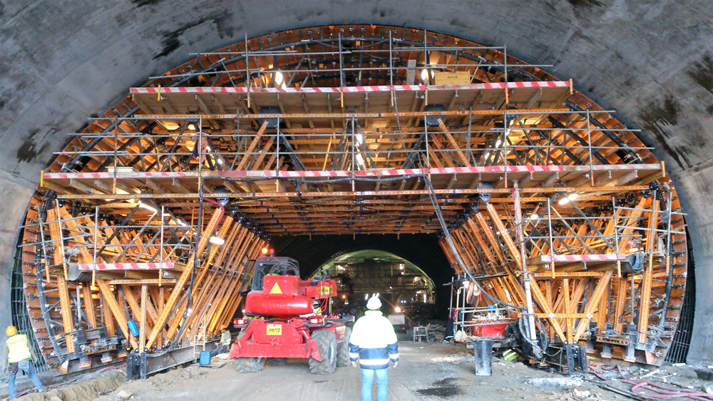 Con un solo carro de encofrado MK de 12,1 m de longitud, 10 m de altura y 19,2 m de anchura se ha completado el túnel en 3 meses, incluyendo las fases de montaje y desmontaje.