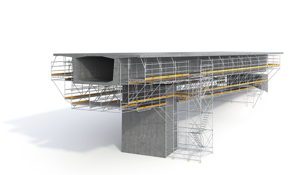 En los trabajos de mejora, mantenimiento y refuerzo estructural de puentes, la diversidad de soluciones del andamio multidireccional BRIO como plataformas de trabajo, carros móviles, accesos temporales o soluciones especiales es la solución segura para cualquiera de las estructuras que componen un puente.