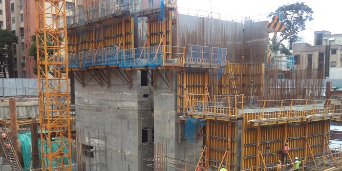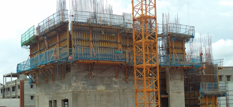 ULMA ha planteado en el núcleo central dos sistemas de trepado basados en el concepto mecano de uno de sus productos estrellas: MK. La combinación de las consolas BMK con las Plataformas interiores KSP, para los huecos interiores, ha permitido ciclos de hormigonado semanales. Con esta solución los trabajos en vertical han avanzado con independencia al de las losas.