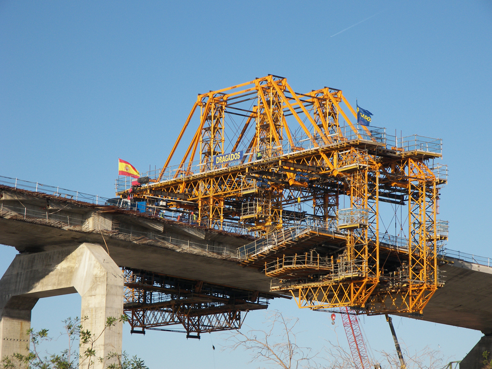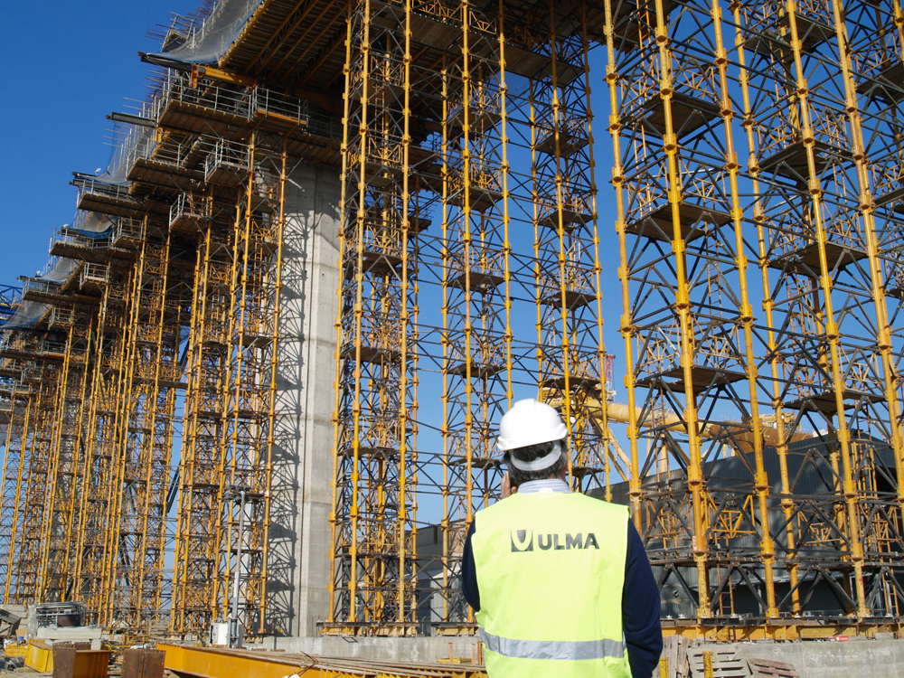 En el puente sobre la Bahía de Cádiz en España, con apeos de gran carga, carro de gran envergadura e importantes requerimientos técnicos, ULMA pone de manifiesto su capacidad de respuesta en cuanto a logística y disponibilidad de parque, así como una asistencia técnica rápida, ágil y de calidad.