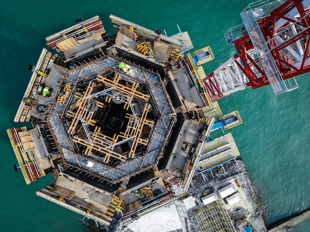ULMA ha desarrollado en este proyecto estructuras de complejidad técnica: los pilonos, las plataformas de trabajo para la colocación del atirantado, las pilas y los dinteles, las dovelas cero, y la viga dintel más importante del proyecto, por tamaño, singularidad técnica y por las interferencias del tráfico durante su ejecución.