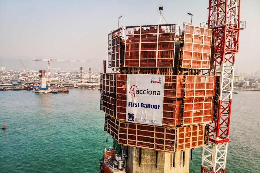 El proyecto consta de dos pilonos octogonales, variable a todas las caras, y 150 metros de altura. El sistema autotrepante ATR no solo ha solventado la altura y la geometría de los pilonos si no que se ha adaptado a la presencia de una cruz ornamental metálica de 50 m de altura embebida en el hormigón, homenaje a la llegada de Magallanes a Cebú. Asimismo, la flexibilidad del sistema ha permitido que se adecuara a la presencia de los cajones de atirantado, embebidos en el tabique, durante el proceso de hormigonado. Una interferencia importante en el interior de los pilonos durante la Fase 3 prevista también en el diseño inicial de la solución. El empleo de este sistema ha permitido disponer la grúa para otros trabajos auxiliares, como el de ferrallado.