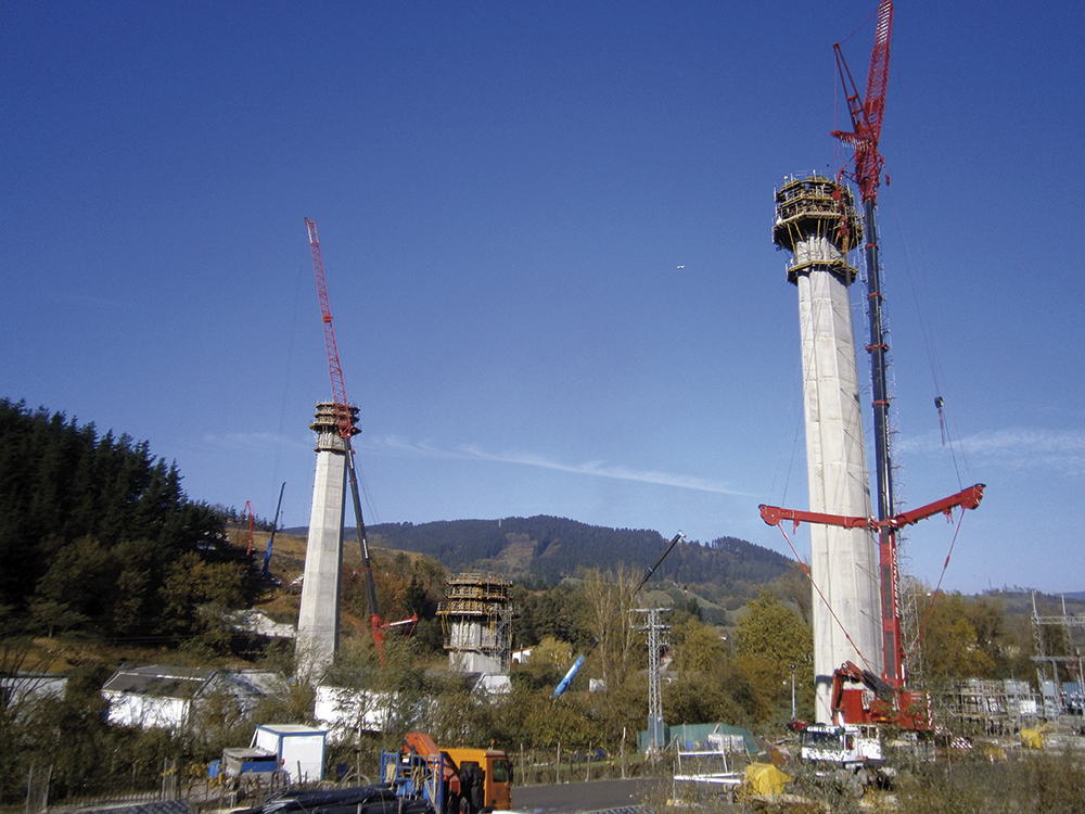 Los tableros se han apeado con torres de gran capacidad de carga, como T-500 para cimbra porticada o cimbras cuajadas cuando el terreno ha posibilitado esta solución. Las pilas se han ejecutado con el encofrado de vigas ENKOFORM V-100, trepado sobre consolas hasta alcanzar las alturas requeridas. Y los túneles a cielo abierto se han construido con la utilización de carros MK, sistemas ligeros y flexibles que obtienen grandes rendimientos de ejecución en este tipo de obras