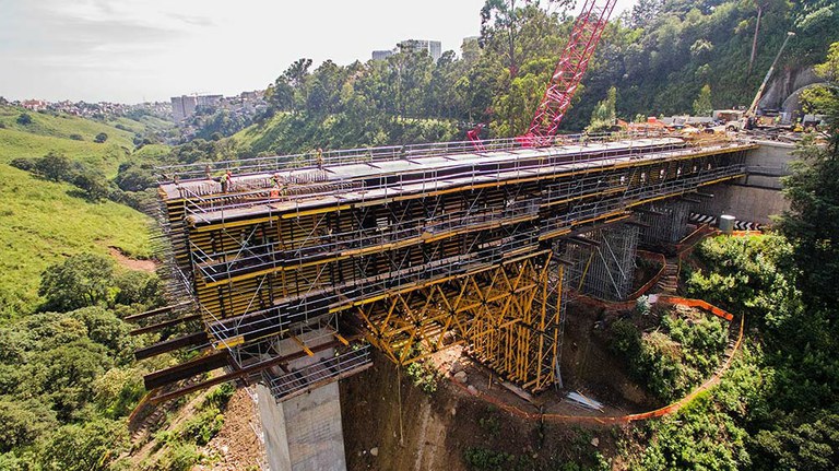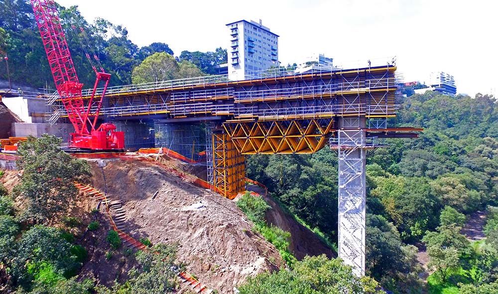 El Sistema MK ha vuelto a demostrar sus múltiples aplicaciones en forma de carro de avance, cimbra y cercha de gran carga, así como encofrado. Un solo sistema para todo un proyecto.