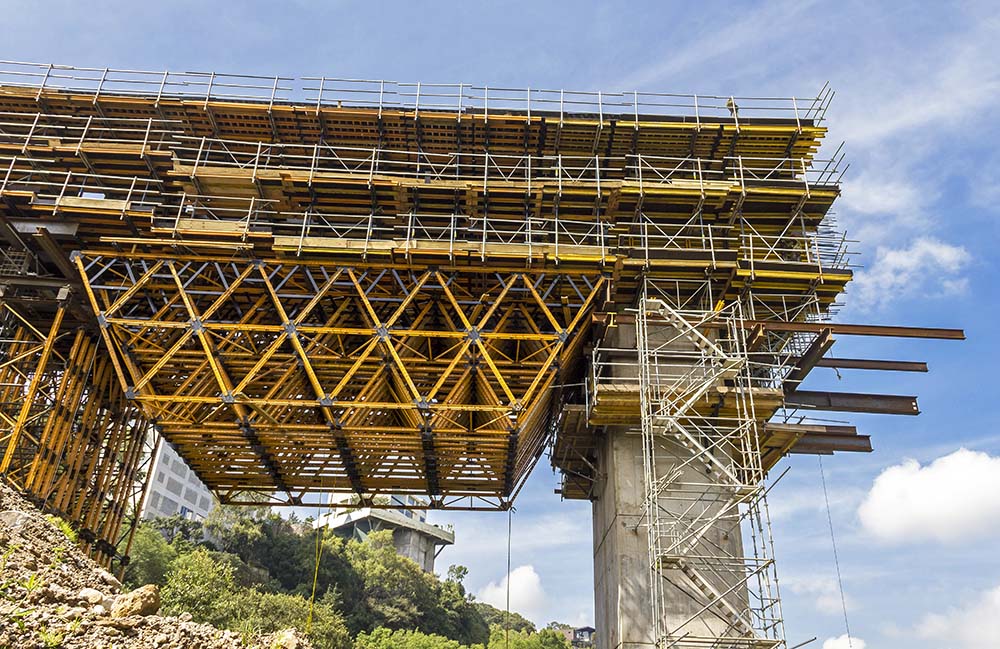 El equipo de ingeniería de ULMA ha combinado los sistemas de cimbrado robusto OC y de gran carga MK para el apeo del tablero a alturas superiores de 15 m de acuerdo a la orografía escarpada del terreno. La cercha MK apoyada en la pila y en las cimbras MK ha salvado un vano de más de 20 m de longitud.