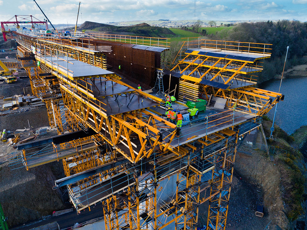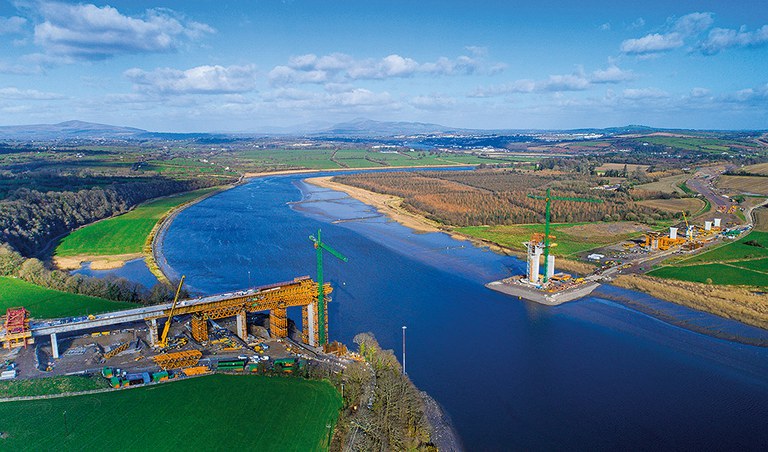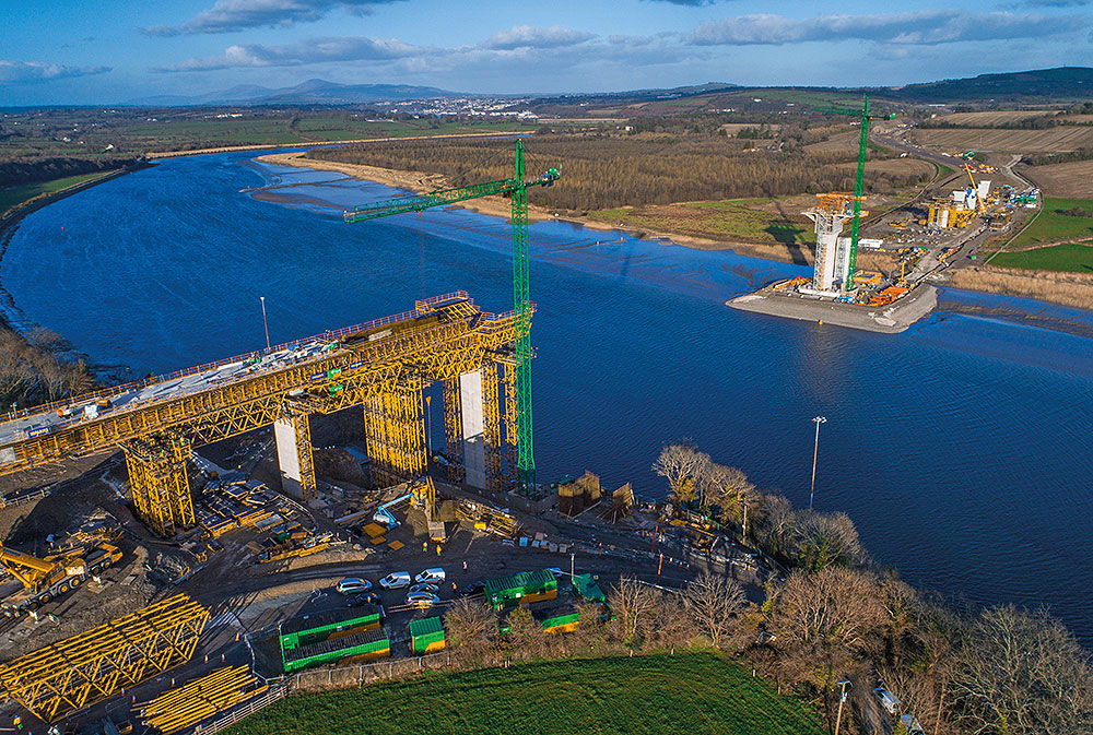 El puente sobre el Río Barrow, es una estructura extradosada de 887 metros que será la más larga del mundo en su categoría. Esta tipología de puentes se caracteriza por tener tirantes de menor inclinación y por tanto, los pilonos tienen menor altura en comparación con las dimensiones de los vanos del tablero.