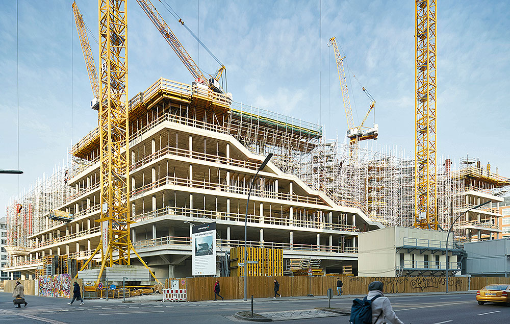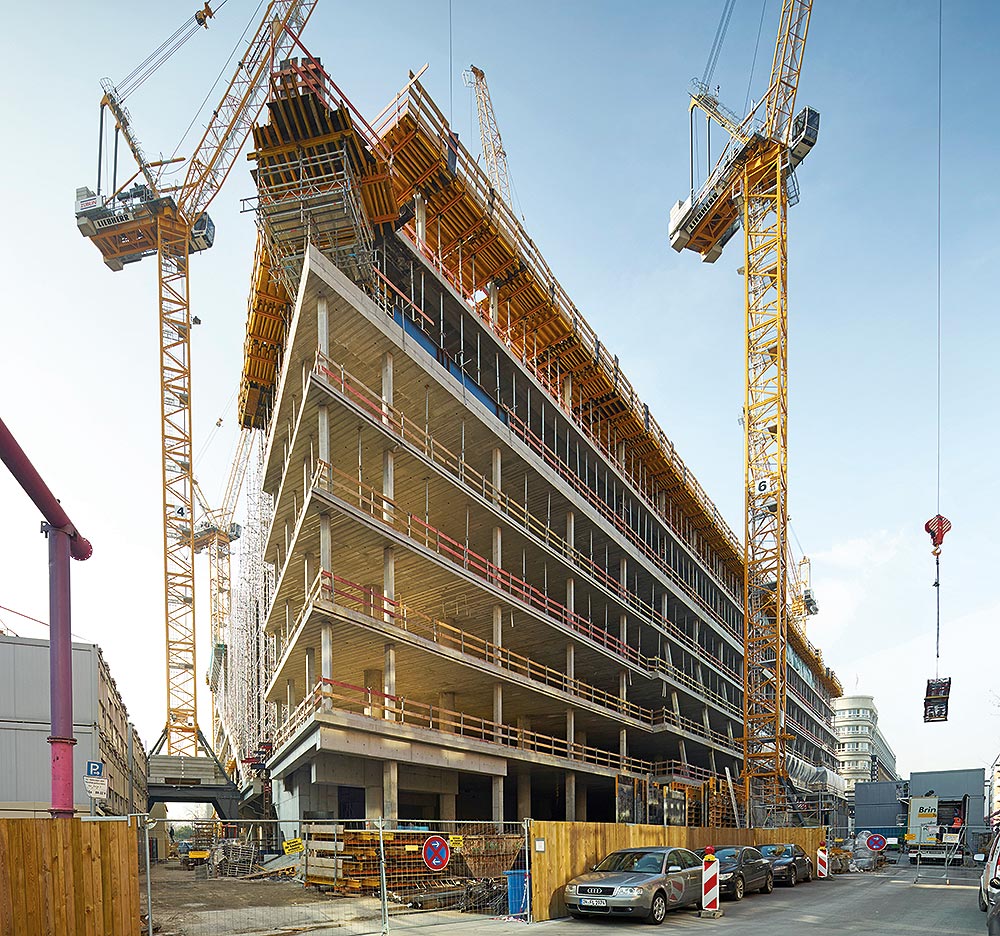 Para los tabiques, los núcleos del edificio, las columnas, los columnas inclinados, las rampas, vigas, etc., se ha empleado 2.500 m² de encofrado modular ORMA. Para conseguir los requisitos arquitectónicos del hormigón se ha suministrado los paneles con tablero fenólico.