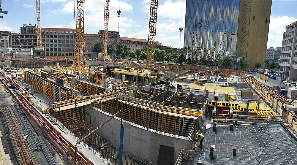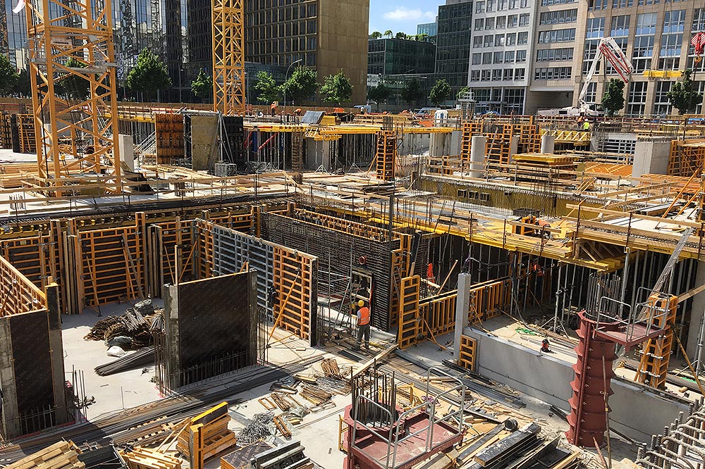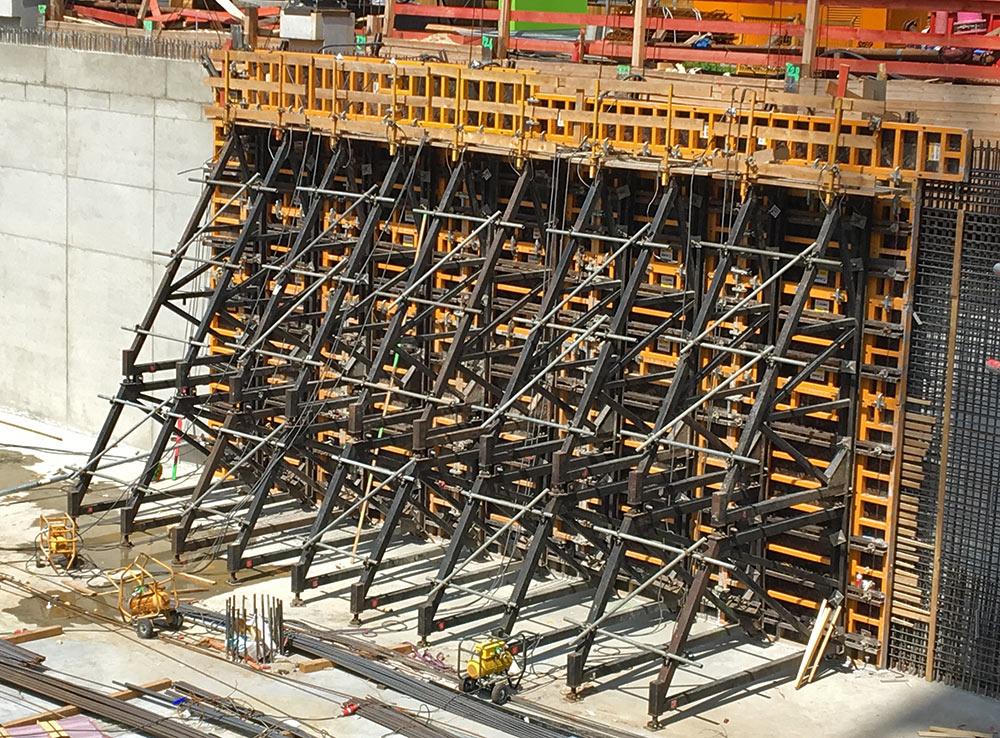 La dimensión del proyecto es considerable: en los 3 primeros meses de excavación, alrededor de 5.500 camiones han trasladado 75.000 m³ de tierra. Para el encofrado y estabilización de la zona subterránea se ha empleado en todo el perímetro cerchas a una cara EUC de hasta 8,10 m de altura junto con encofrado modular ORMA. El gancho de izado ha permitido trasladar grandes conjuntos de encofrado con grúa ahorrando así tiempos de trabajo.