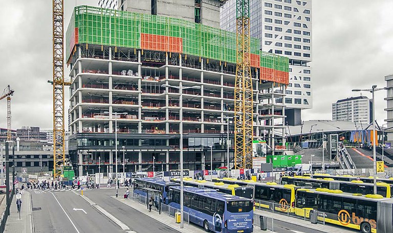 Con la protección perimetral HWS, se han creado espacios de trabajo donde los operarios han estado protegidos de las inclemencias meteorológicas, el efecto visual de la altura y posibles caídas, en una zona muy concurrida de transeúntes. La malla metálica empleada en la cubrición ha reducido a la mitad la incidencia del viento sin disminuir el paso de luz natural.