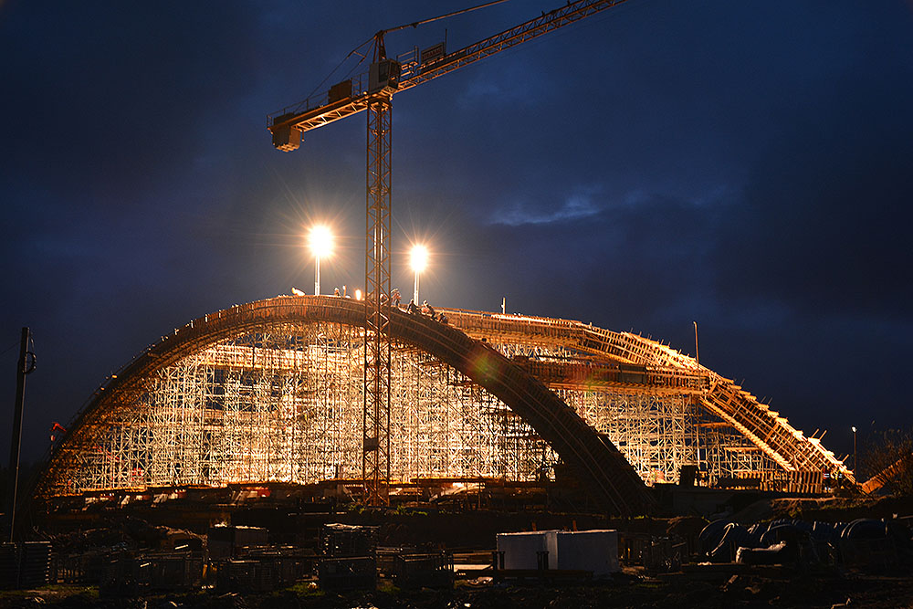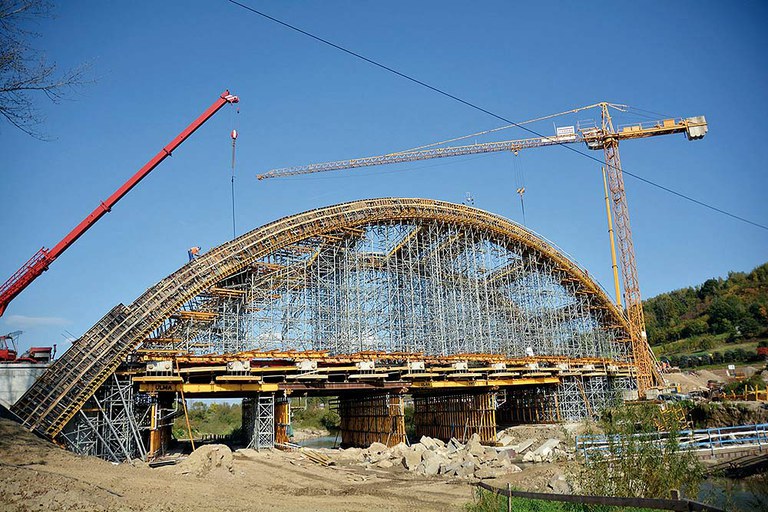Para la construcción de este puente, se han utilizado apeos a diferentes alturas logrando una gran eficiencia en todo momento.