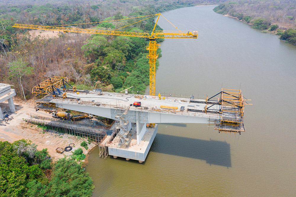 En una obra como esta, hay muchos desafíos. Para evitar las afecciones al entorno medioambiental y el empleo de apeos sobre el terreno, el tramo sobre el río Cuiabá está siendo ejecutado con carros de avance CVS de ULMA Construction. Este equipo dispone de un sistema de avance hidráulico reduciendo la mano de obra necesaria y tiempos de ejecución. “La empresa constructora RIVOLI ha optado por esta solución de voladizos sucesivos para superar un vano de 120 metros, incrementar la productividad y cumplir con el cronograma establecido en el menor tiempo posible”.