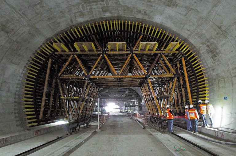 El túnel de Santa Rosa se ha realizado con dos carros MK, con una altura de 8,36 m y una anchura de 13,20 m, uno en cada entrada, lo que ha permitido agilizar la ejecución.
