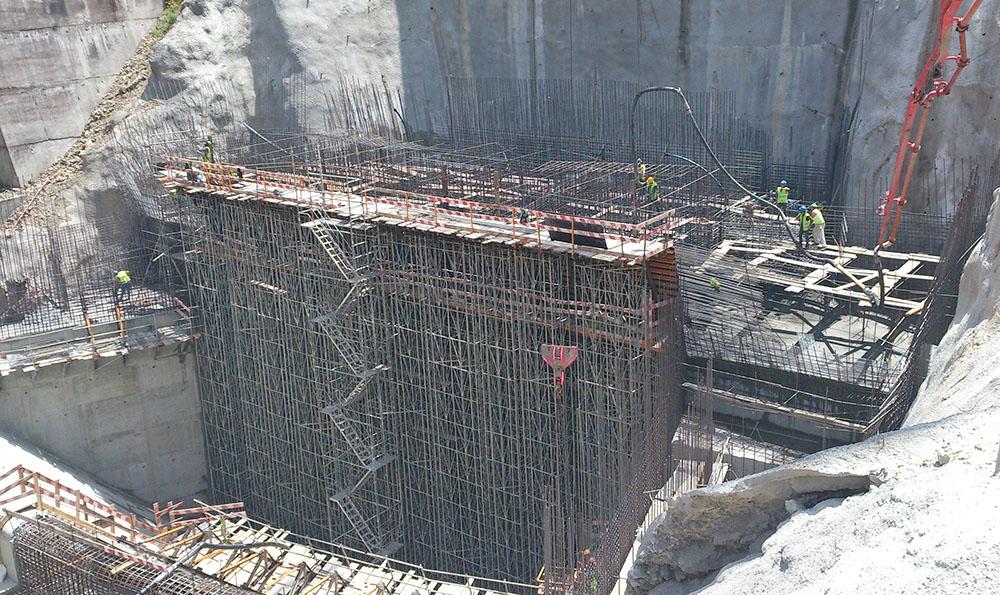 Los tabiques de las instalaciones de la central, así como los hastiales de los túneles y los laterales de las vigas, se han ejecutado con más de 1.400 metros cuadrados de encofrado modular ORMA. Y con el sistema autotrepante ATR, se han realizado las chimeneas de equilibrio de 358 m de altura, a una cara, y en tongadas de 3,5 m.
