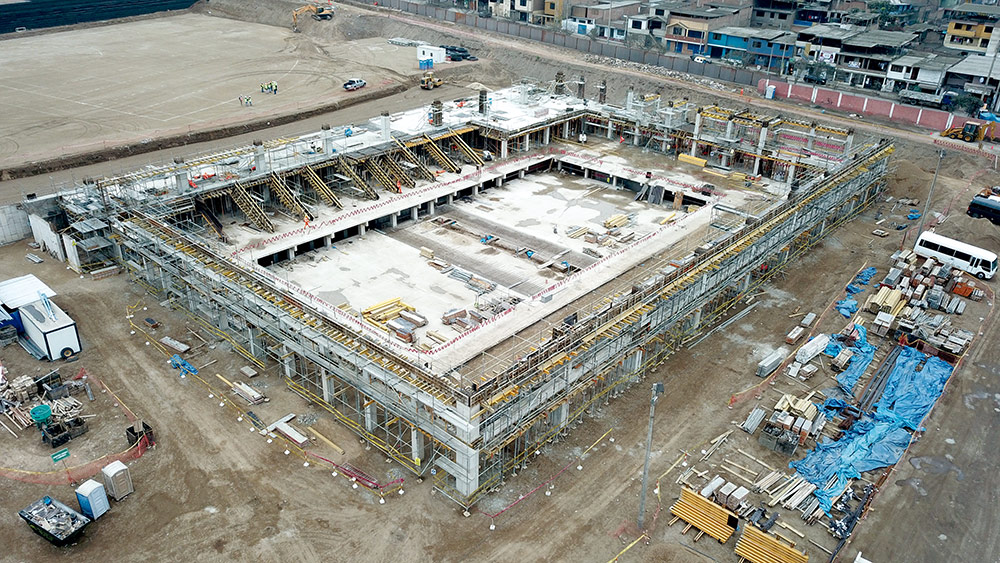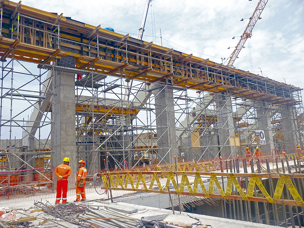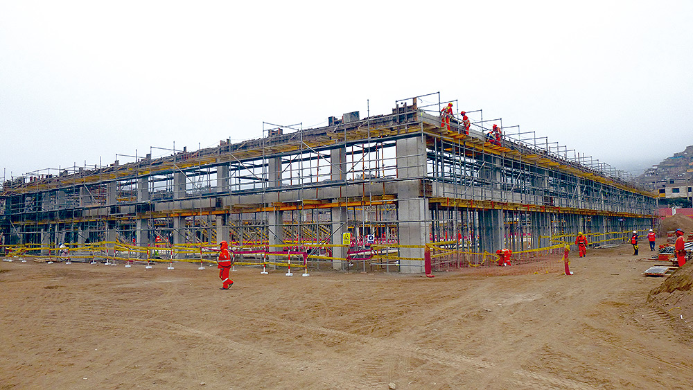 Las columnas de 14 metros que sirven como base para el Coliseo de la Villa Deportiva del Callao, se ejecutaron mediante el encofrado modular ORMA, mientras que para el hormigonado de tabiques el encofrado modular ligero COMAIN fue el sistema elegido. En cuanto al apeo de losas y graderíos, la Cimbra BRIO fue la mejor opción y el andamio BRIO fue utilizado para facilitar el acceso a las diferentes áreas y garantizar espacios de trabajo seguros. En total, se suministraron más de mil toneladas en andamios y encofrados.