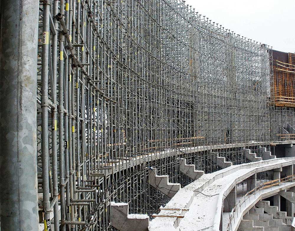La altura de la fachada ha llegado hasta los 27 m, y la altura desde la cancha de juego a la cubierta, 41 m. La estructura del soporte de la cubierta, con un vano de 130 m, se ha construido por un enorme anillo montado sobre 40 columnas de hormigón armado.