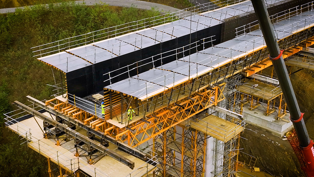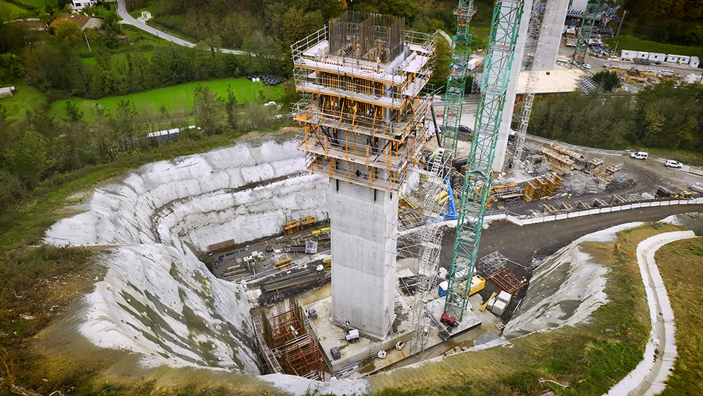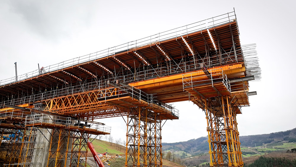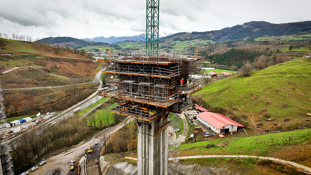 Las 6 pilas que componen el viaducto alcanzan una altura máxima de 71 m por lo que la seguridad y el rendimiento es fundamental a la hora de seleccionar los equipos. El sistema autotrepante ATR y los paños de encofrado ENKOFORM V-100, han conformado un conjunto cerrado perimetralmente, que se ha elevado de forma hidráulica y autónoma sin depender de la grúa, adaptándose al cambio de geometría en cada tongada. Los dos conjuntos de encofrado interior se han apoyado sobre plataformas telescópicas KSP para absorber las variaciones de la geometría de la pila.